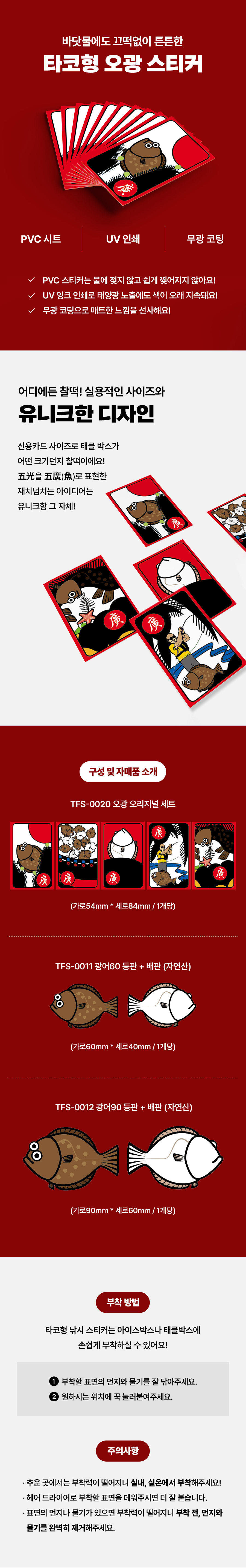 히트메이드 오광스티커 (낚시스티커) 상세페이지 리뉴얼 작업을 진행하였습니다. 전반적으로 이미지 소스가 부족하였기 때문에, 합성 및 목업 제작을 통하여 섹션별 비주얼을 생성하였고, 화투라는 컨셉에 맞게 재밌고 경쾌하게 이미지를 표현하였습니다.
