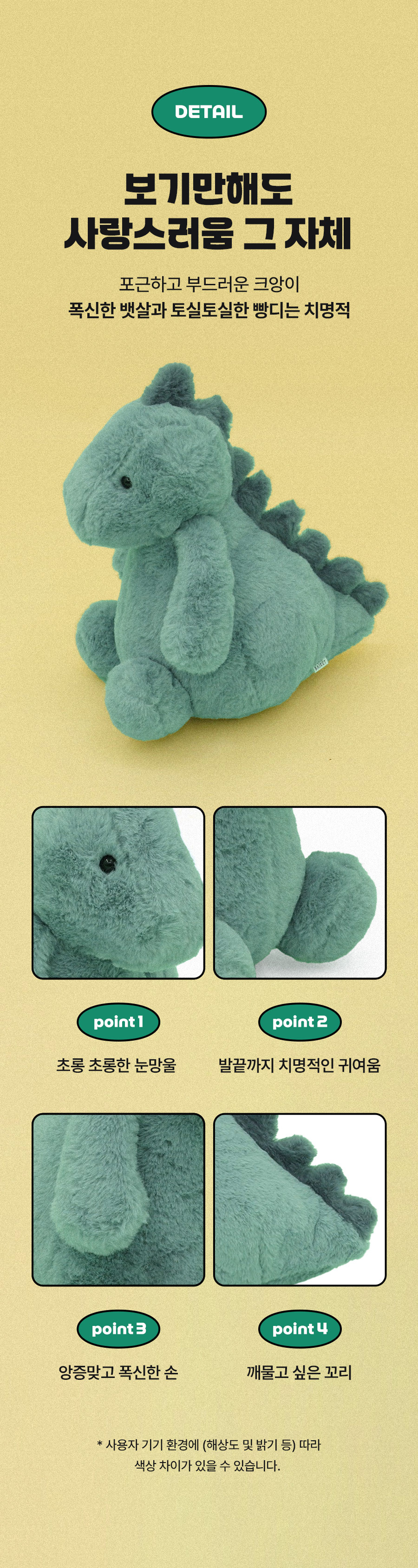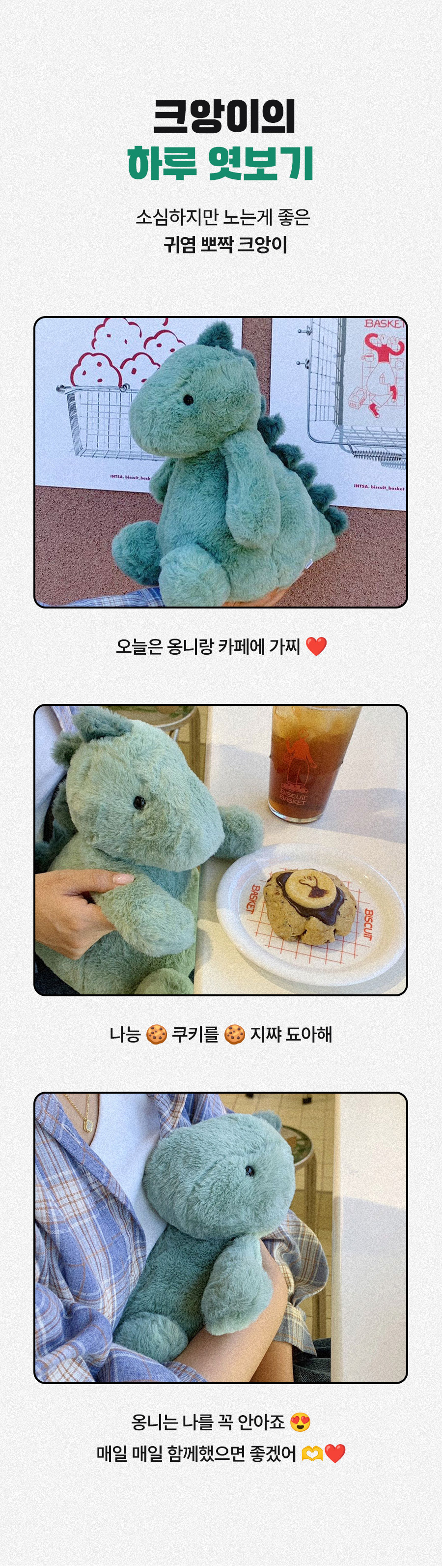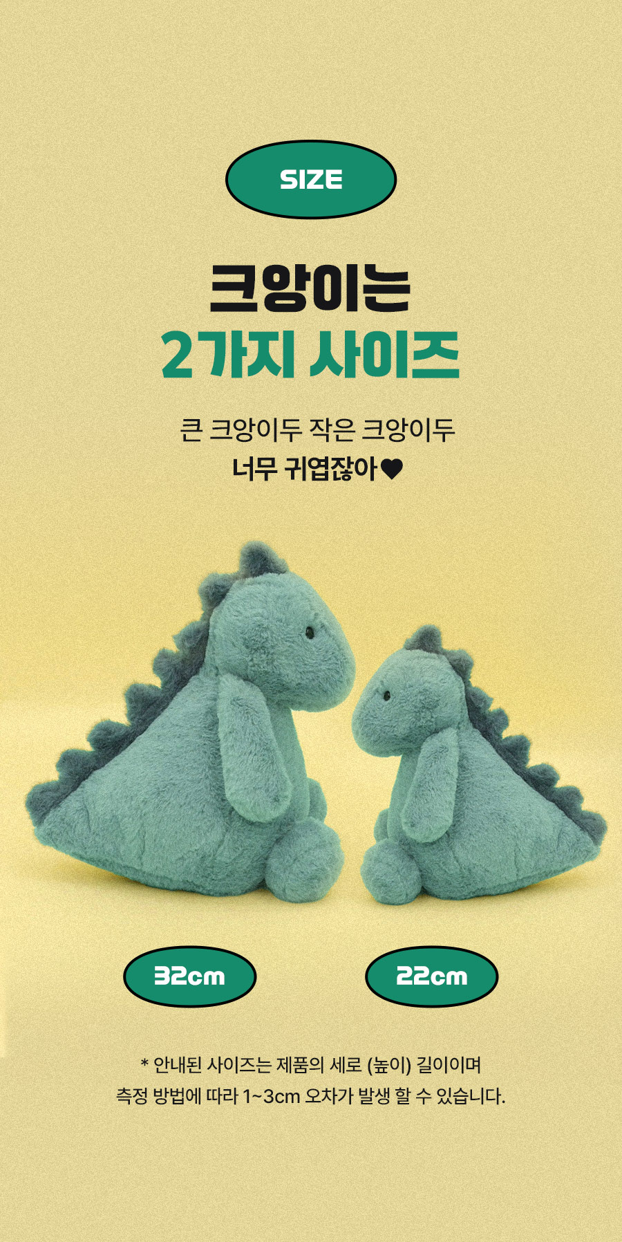디어바스켓의 신상품 공룡 인형 크앙 상세페이지 디자인입니다. 디어바스켓 대표님이 주신 간단한 문구 한 줄에 살을 붙여 페이지를 기획하였고, 디어바스켓이 추구하는 디자인 방향성을 살려 심플하면서도 귀엽고 밝은 무드로 작업을 하였습니다. 새아디자인과 벌써 10회째 함께하고 있는 디어바스켓! 디자인 결과물에 항상 높은 만족을 해주시고 계신데요, 매번 믿고 맡겨주셔서 감사합니다.