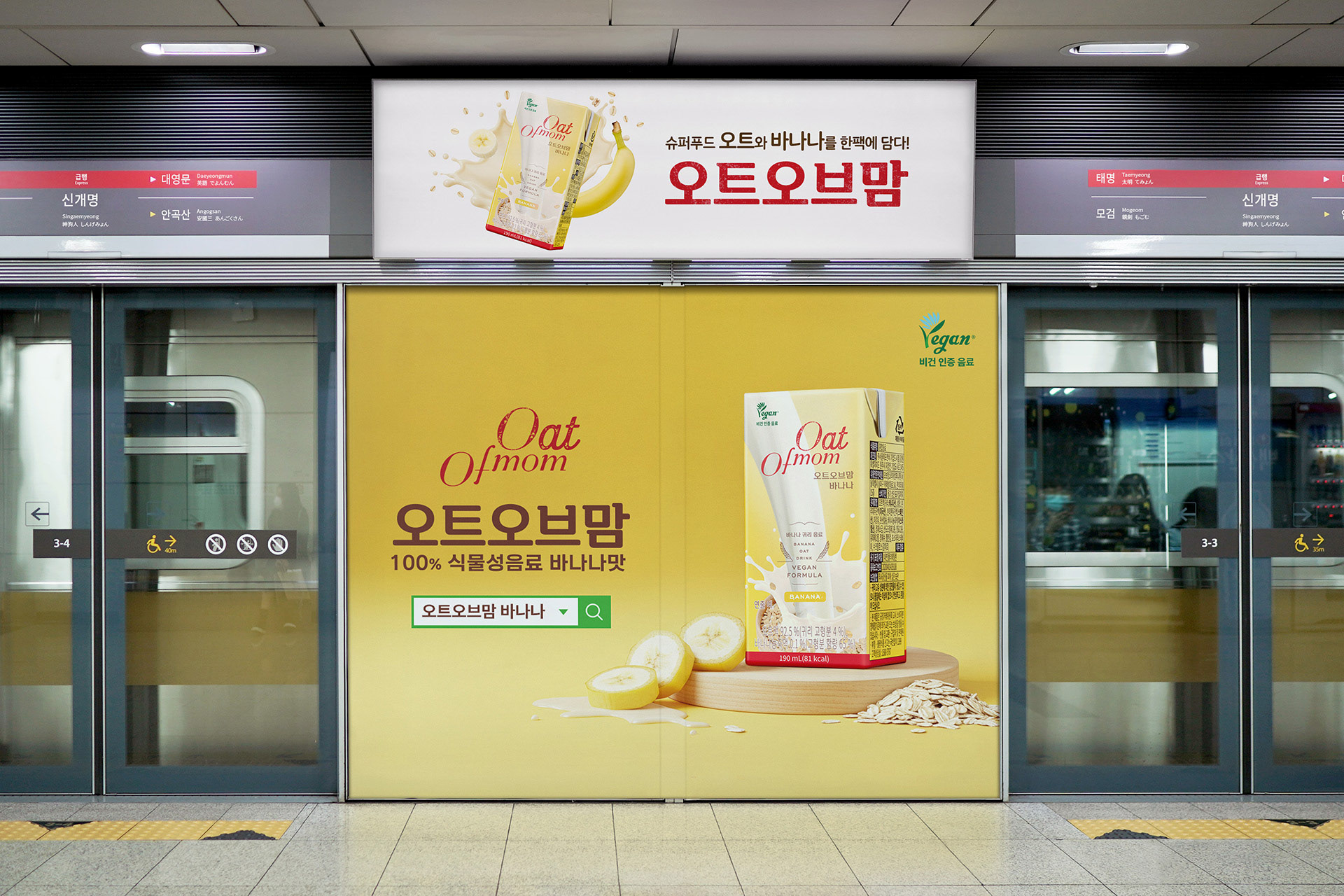 한미약품 자회사 오브맘코리아의 오트오브맘 옥외광고 디자인입니다. 누끼 1종을 활용하여 생성형 ai를 통해 비주얼을 제작하였습니다. 오트오브맘의 메인 원료인 귀리 / 바나나 요소를 조화롭게 배치하여 제품의 특징을 한 눈에 알 수 있도록 작업하였고, 키카피를 효과적으로 전달할 수 있도록 디자인하였습니다.